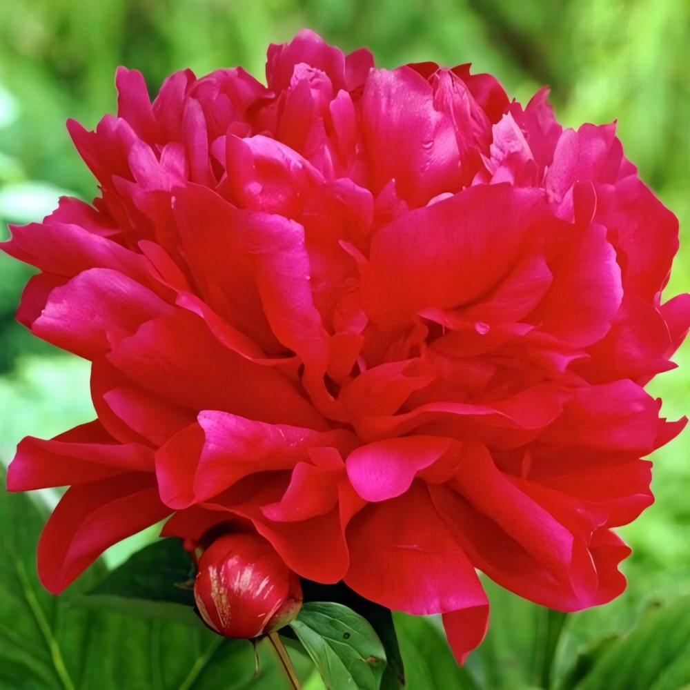 Розовидный пион. Обильное цветение. Расцветка цветка: от тёмно-красного к тёмно-бордовому оттенку. Cо временем цветок становится более выраженной махровости. Куст компактный. Листья темно-зеленые с красным оттенком.