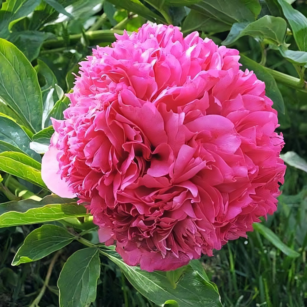 Махровый, шаровидный, цикламеново-розовый. Правильный высокий шар из гофрированных лепестков. Лучший розовый махровый гибрид. Среднего срока цветения.
