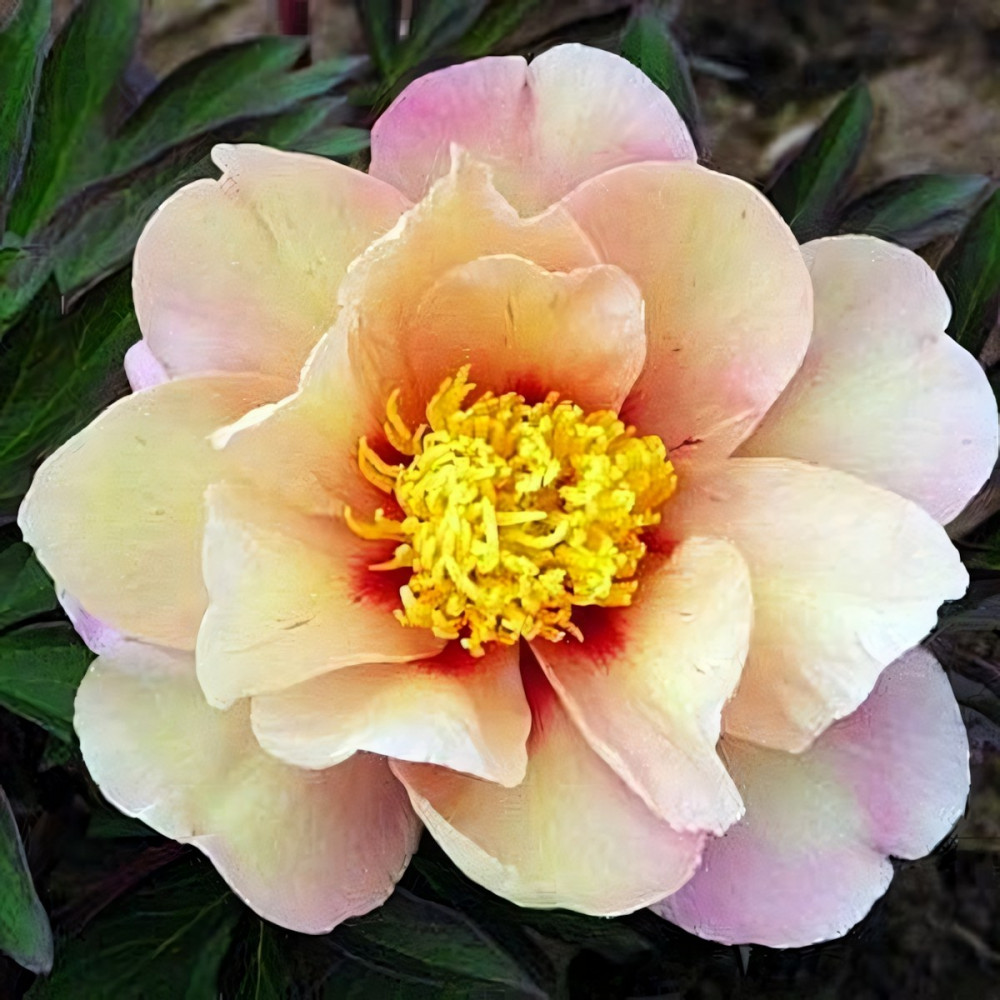 Полумахровый. Крупный персиково-желтый цветок, с более темной окраской по краю лепестков и бордовым центром. Стебли очень крепкие, имеют 2-3 бутона. Куст пиона Callies Memory (Калис Мемори) крепкий, ровной формы, не разрушается под весом крупных цветков. Великолепно будет смотреться при групповых и одиночных посадках на газонах и цветниках. Используется для создания букетов.