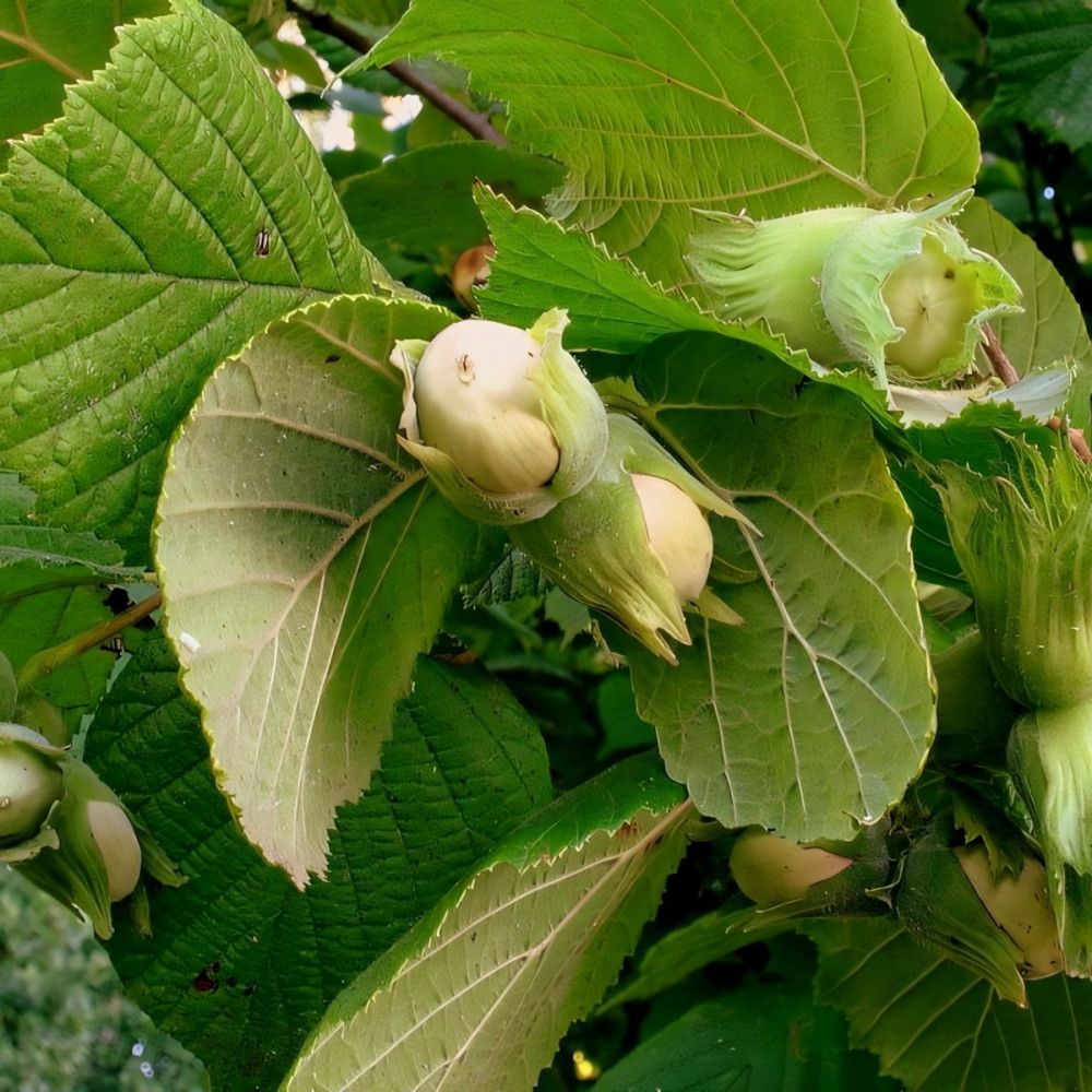 Плоды удлиненные, с заостренной вершиной и бугристым основанием. Размер одного ореха 16*19 мм, в соплодии находится от 2 до 8 штук. Плюска зеленая, длиннее ореха, с приоткрытой вершиной, легко снимается при созревании плода. Масса ореха 0,8-1,2 г, заполняет всю скорлупу (50% от массы). Вкусовые качества – отличные. Посадочный материал саженцы