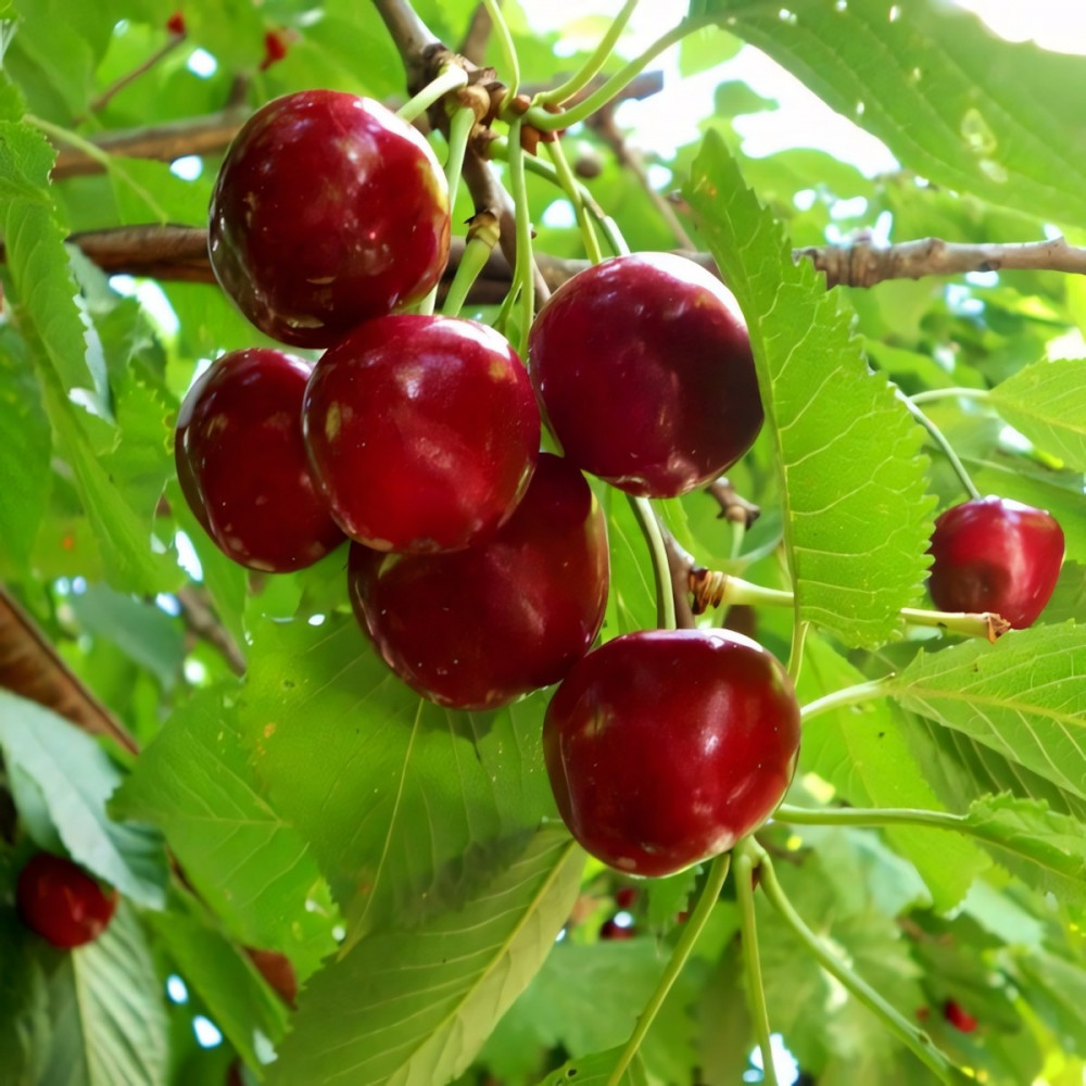 Внешний вид Дерево средней высоты, его рост достигает 3 м, крона имеет форму перевернутой пирамиды, ветвей не слишком большое количество. К 5 годам растение имеет диаметр кроны в 1 м. Ствол и ветки окрашены в коричневый цвет с серым оттенком. Листва темно-зеленая, с глянцевым блеском. Ягоды собираются в кисти по 4 шт., окрашены они в насыщенно-красный цвет, масса одного экземпляра составляет 5 г. На вкус вишня сладкая, с еле уловимой кислинкой.